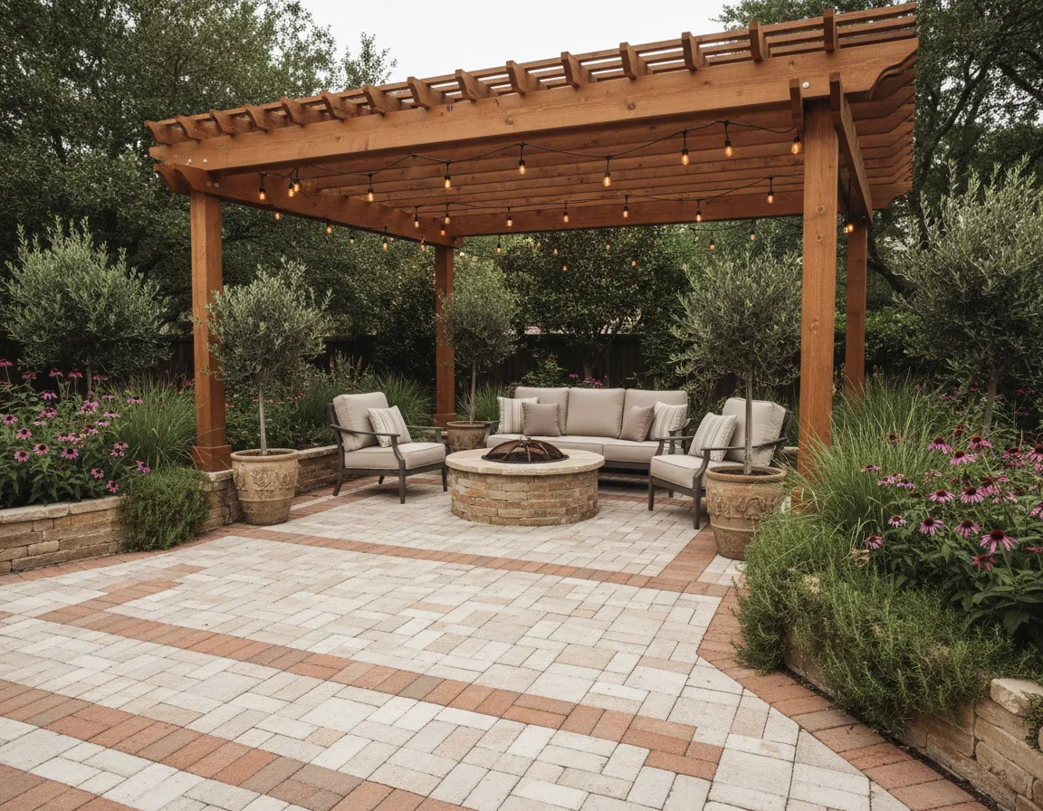 Cozy fire features, shade structures, and lounge zones that keep your backyard inviting year-round.